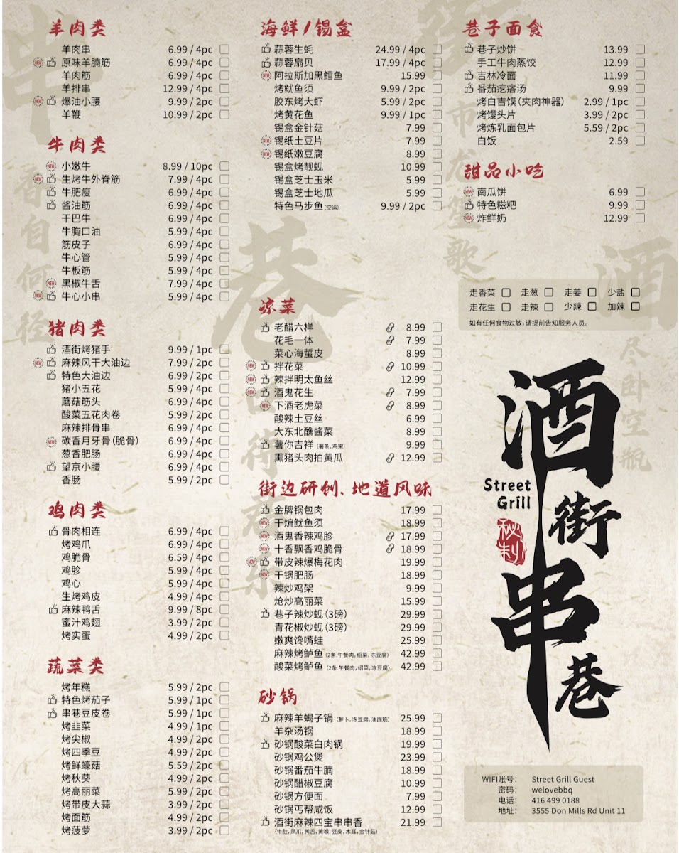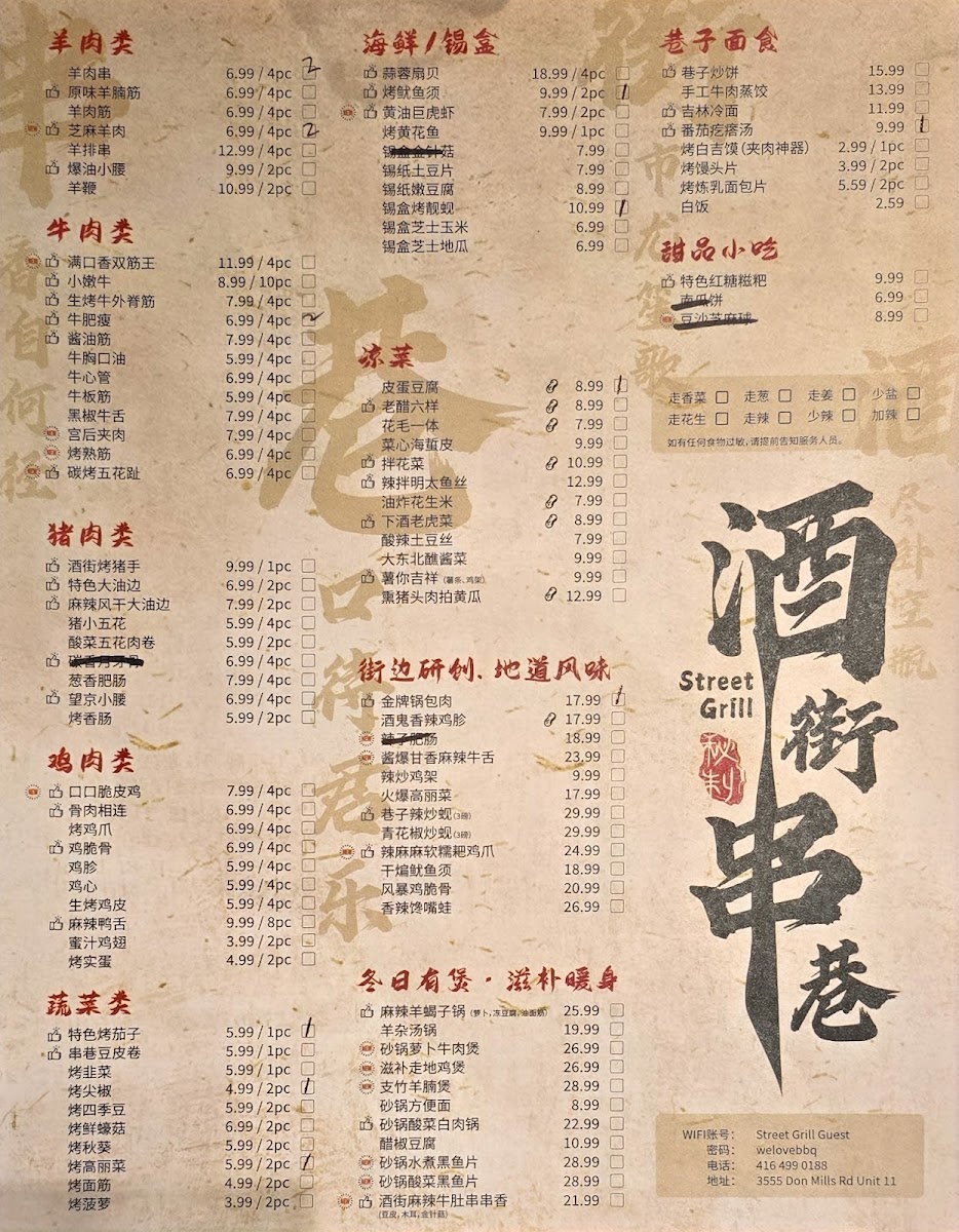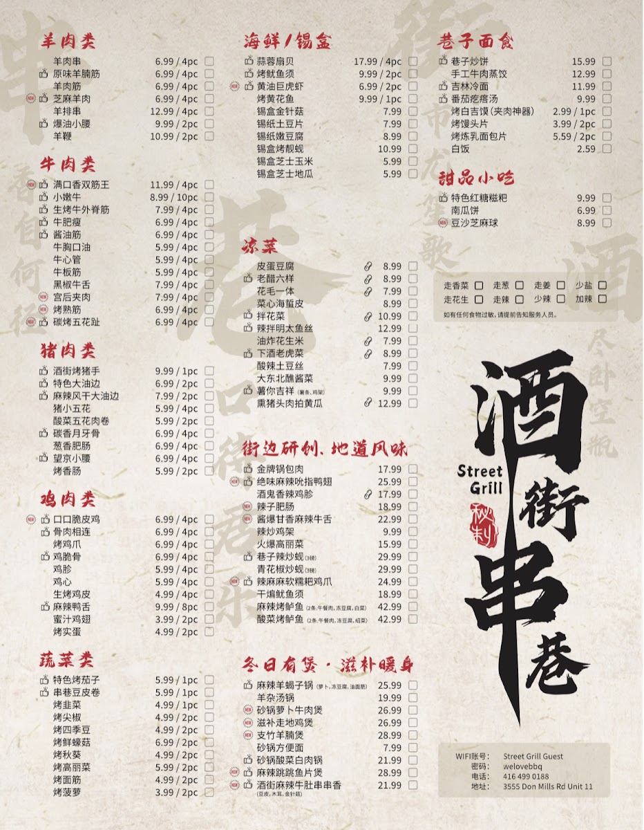 Welcome to Street Grill, a vibrant Chinese restaurant located at 3555 Don Mills Rd, North York, ON. This hidden gem specializes in smoky, flavorful skewers, offering an unbeatable value in the Greater Toronto Area.